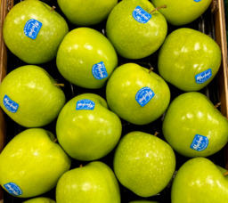 Frisse, knapperige appel met een uitgesproken zure smaak en een heldergroene schil.