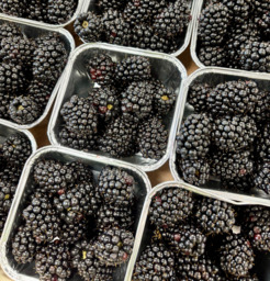 Zwarte vrucht, verpakt in doosje van 150 gram.